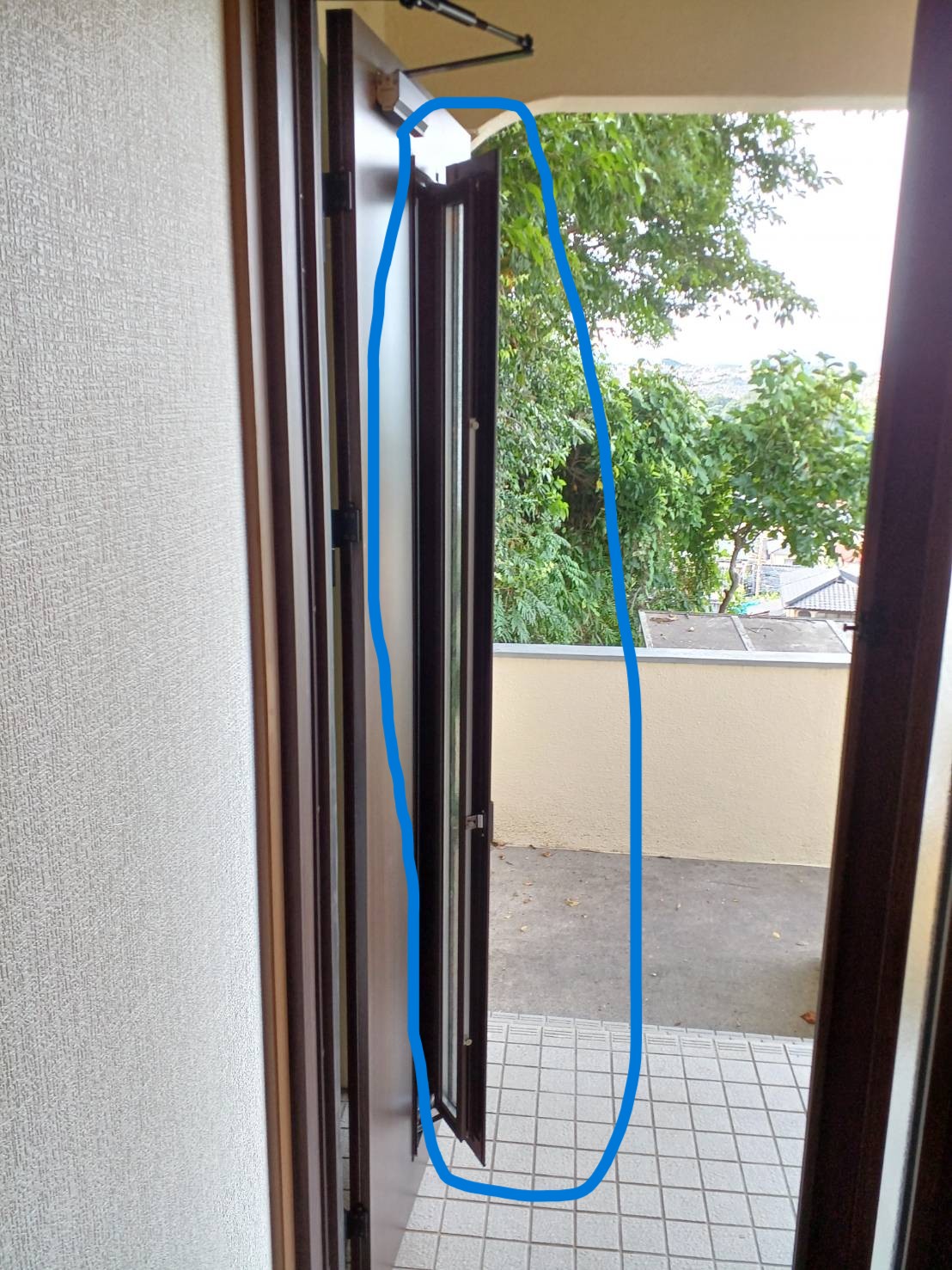 扉についているガラス部分(青枠部分)は開口ができるようになっているので、